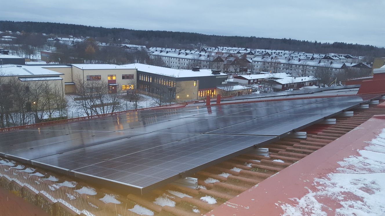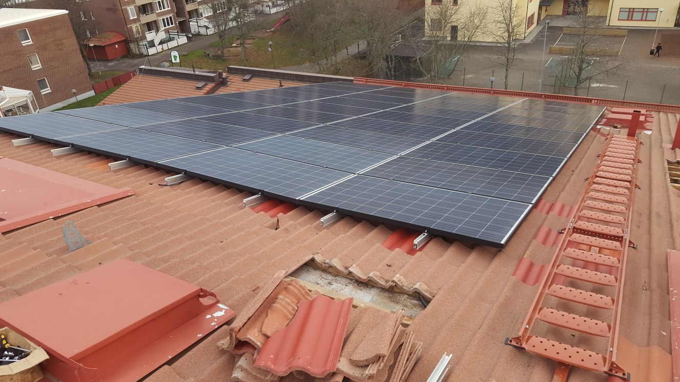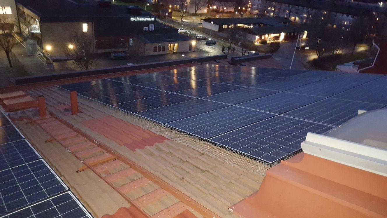 Solcellssystemen som levererats till Brf Giraffen i Skäggetorp Centrum i Linköping har en toppeffekt på 74,25 kWp.